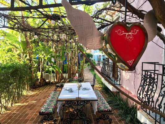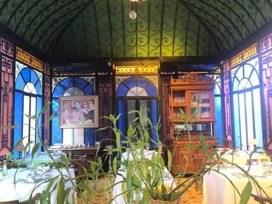 Ao entrar no lobby, a estrutura de metal importada do Vietnã com vitrais coloridos é simplesmente hipnotizante. Lá funciona também o bistrô, onde são servidas as refeições.