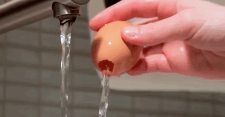 -deixar a casca de molho para sair o cheiro/gosto do ovo