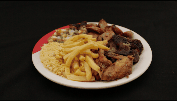 Churrasco misto, empadinha de frango, batata recheada, carne assada com batatas coradas e galinha ao molho pardo são alguns dos pratos que podem ser degustados