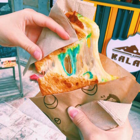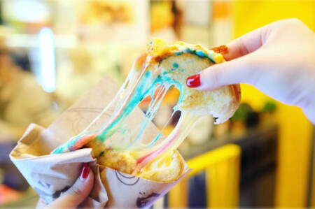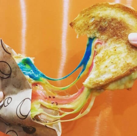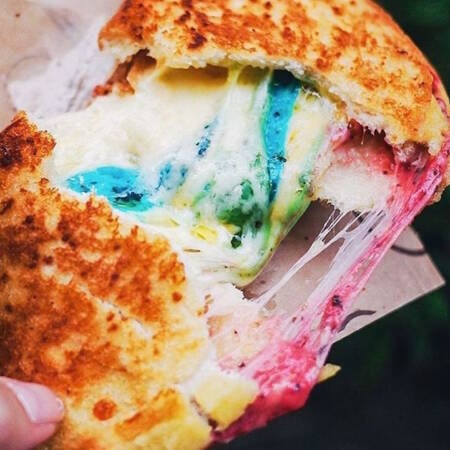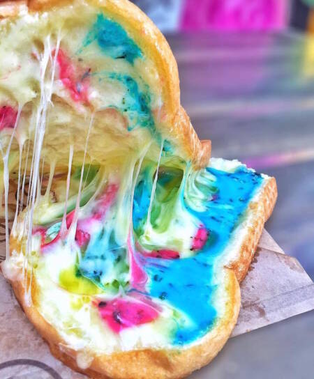 O sanduíche de queijo quente com cores do arco-íris é a mais nova tendência gastronômico-psicodélica em Hong Kong.