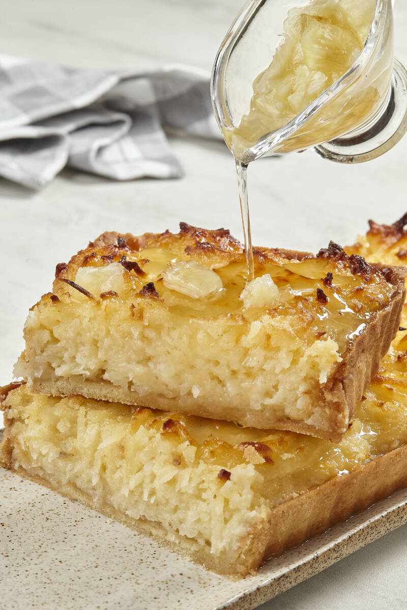 Para a sobremesa, a sugestão é uma Torta de cocada com calda de quentão (fatia R$ 26 | M R$ 118 | G R$ 149), que traz recheio cremoso de doce de coco fresco, finalizada com calda de quentão infusionada com especiarias e cubinhos de abacaxi. Pense!