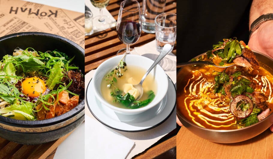 Sopa com jeito de receita de vó, o Caldo Dourado feito pela chef Andrea Kaufmann na AK Deli é daquelas receitas aconchegantes, perfeitas para os dias frios. O caldo translúcido, preparado com frango, é fervido lentamente. À mesa, é servido com duas esferas feitas com farinha de matzá.