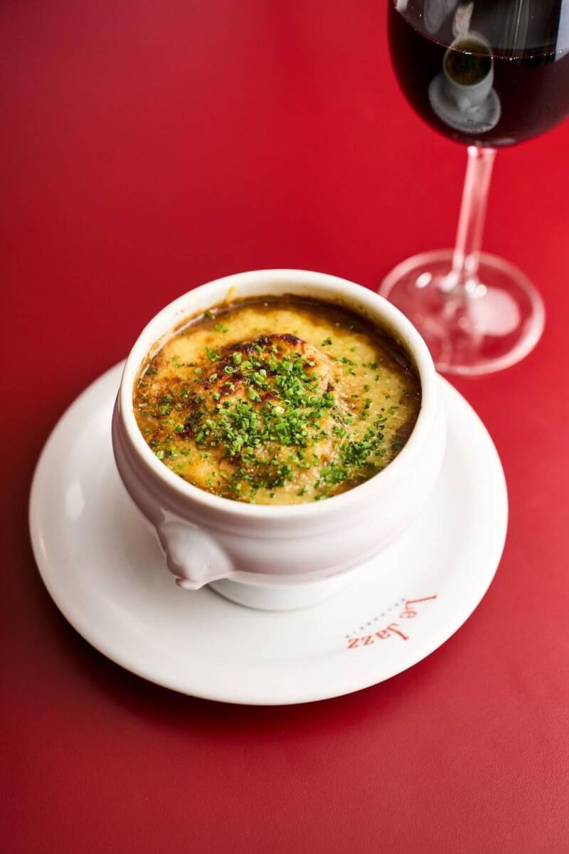A chef Vanessa Silva, que segue a escola clássica de Erick Jacquin, faz a sopa de cebola tradicional francesa. Primeiro carameliza lentamente o vegetal, depois entra com o vinho branco e finaliza com caldo de legumes. A manteiga chega chegando sem dó e, para embalar lindamente, chega à mesa envolta numa massa folhada artesanal. Perfeição!