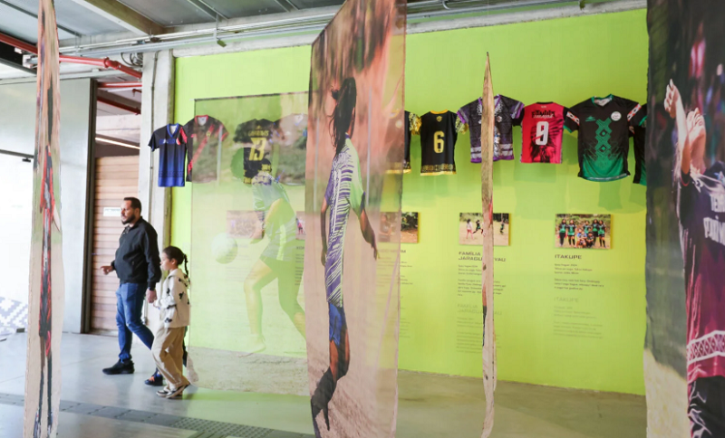 Entre os objetos expostos estão camisas desenhadas pelas próprias jogadoras, inspiradas em elementos da arte guarani. Cada uma representa uma das cinco equipes femininas da Terra Indígena, reforçando que, ali, o futebol também é ferramenta de expressão cultural.