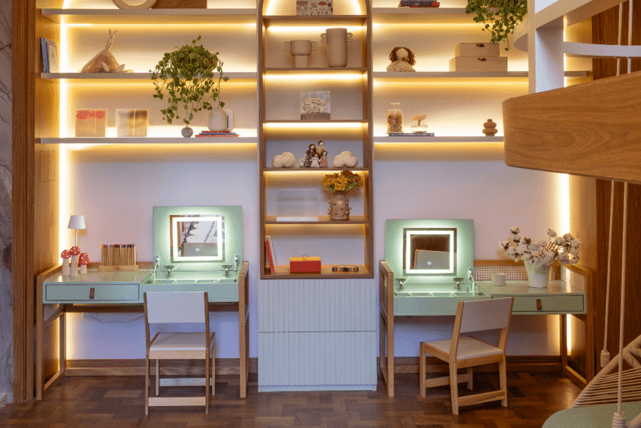 Nesse contexto, é possível criar um espaço que acompanhe o desenvolvimento das crianças, sem a necessidade de grandes reformas ou substituições constantes. Além disso, dá para unir ludicidade, afeto e durabilidade em um ambiente que precisa evoluir com o tempo.
