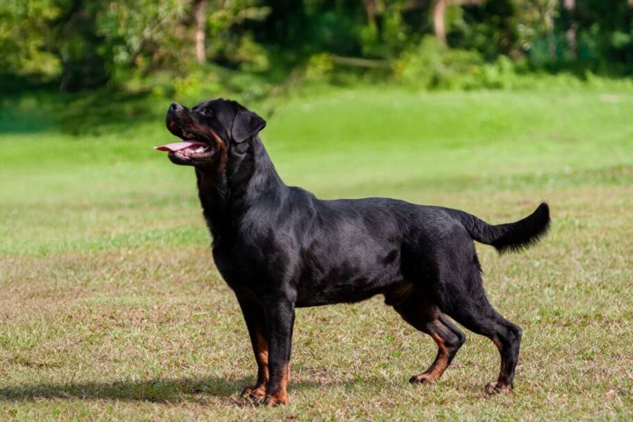 Originário da Alemanha, o rottweiler é um cão de grande porte conhecido por sua força e presença marcante. Sua pelagem é predominantemente preta com marcações em tons de marrom. Possui corpo forte, musculoso e muito resistente. É um excelente cão de guarda, extremamente leal e protetor com a família. Apesar da fama de agressivo, quando bem socializado, apresenta comportamento equilibrado e afetuoso.