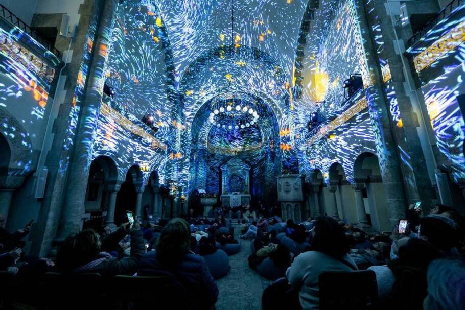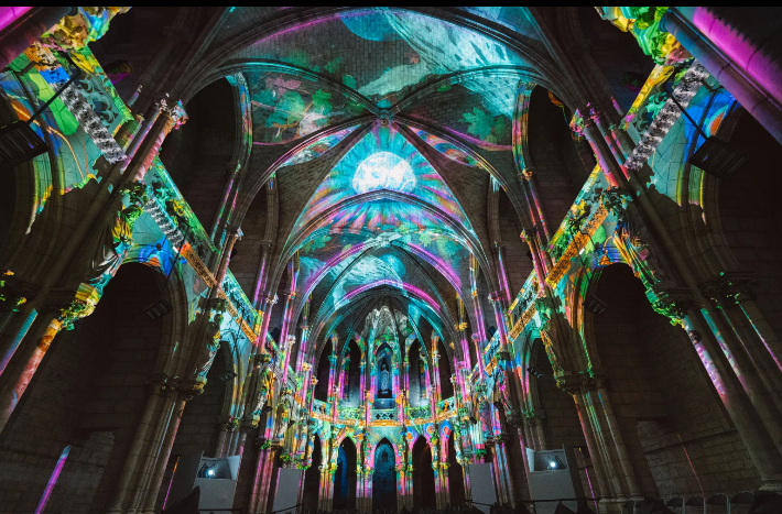 Dezenas de pessoas se organizam ali para acompanhar projeções coloridas no teto e em toda a estrutura arquitetônica da igreja. A apresentação dura 30 minutos e transporta o espectador para a história da Criação por meio de deslumbrantes performances visuais e sonoras.