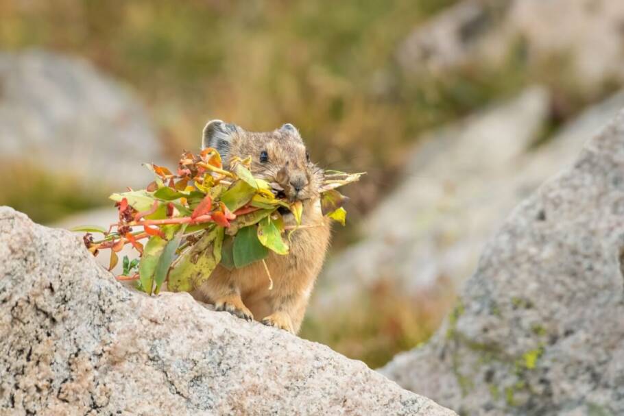Uma das características mais conhecidas do pika é o hábito de criar verdadeiros “montes de feno”. Ele corta plantas, folhas e flores e as deixa secando ao sol antes de armazená-las. Esse processo evita que o alimento apodreça durante o inverno. Esses estoques são guardados em locais protegidos entre as rochas.