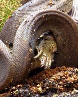 Tem coisas que só acontece na Austrália. Uma série de imagens que está circulando pelas redes sociais mostram uma cobra da espécie píton olivácea devorando um crocodilo inteiro.