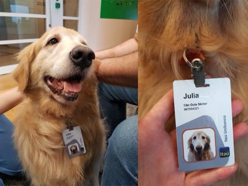 A cão-guia Julia ganhou um crachá de funcionária de um banco e conquistou a internet no último dia 15. A golden retriever ajuda Gabriel Vicalvi, que é analista de sistemas no banco Itaú, em São Paulo, e tem deficiência visual.