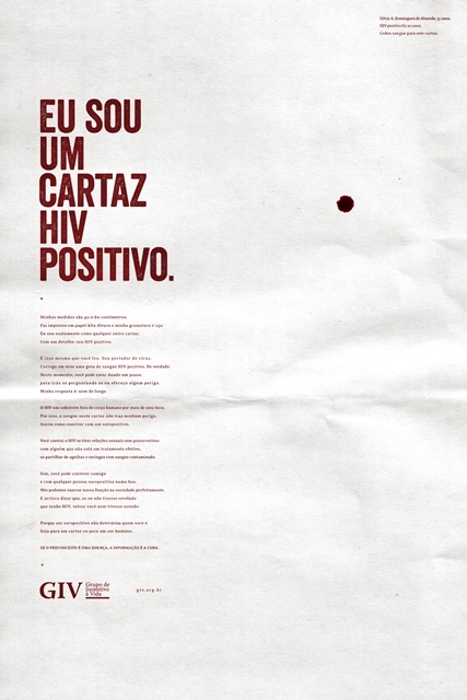 As peças fazem parte da campanha “Cartaz HIV Positivo”, da ONG GIV (Grupo de Incentivo à Vida), criada pela Ogilvy Brasil. A mensagem é: “Se o preconceito é uma doença, a informação é a cura”.