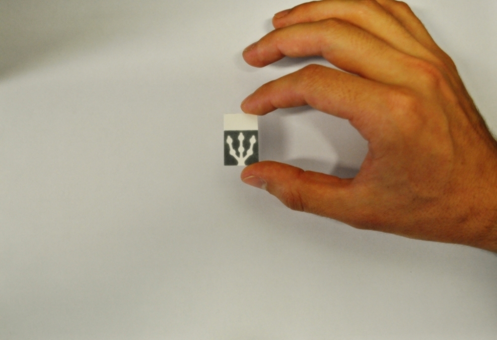 O pequeno dispositivo com detecção por imagem digital, medindo 2 cm por 2 cm, com barreiras hidrofóbicas em papel de filtro foi produzido com o auxílio de uma impressora a cera. Com uma gota de urina colocada no dispositivo e o desenvolvimento de reações com produtos de colorações distintas, indica, simultaneamente, a dosagem dos dois biomarcadores.