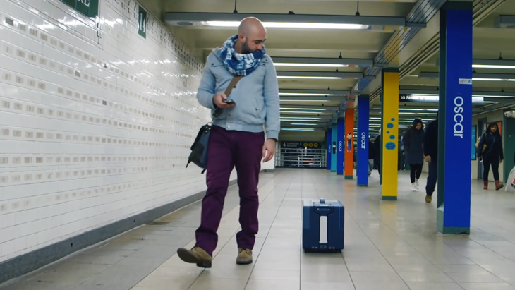 Utilizando uma câmera e conexão Bluetooth, sincronizado com um aplicativo para smartphone, a mala é capaz de localizar e seguir o dono.