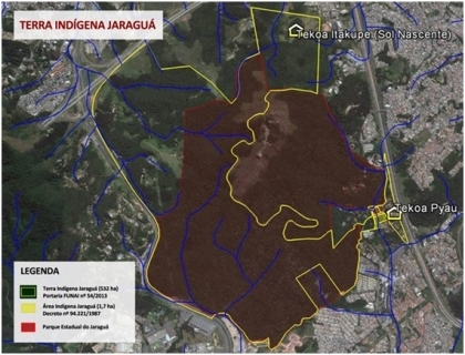 A aldeia da chamada Terra Indígena Jaraguá, atualmente, conta 125 famílias e uma população de aproximadamente 700 indígenas, dos quais quase 400 são crianças.
