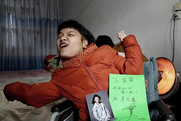Hu Huiyuan, 22 anos, foi diagnosticada com paralisia cerebral quando tinha poucos meses de idade. A jovem chinesa só é capaz de mexer a cabeça e os pés. Mas isso não tirou sua força de vontade de viver.