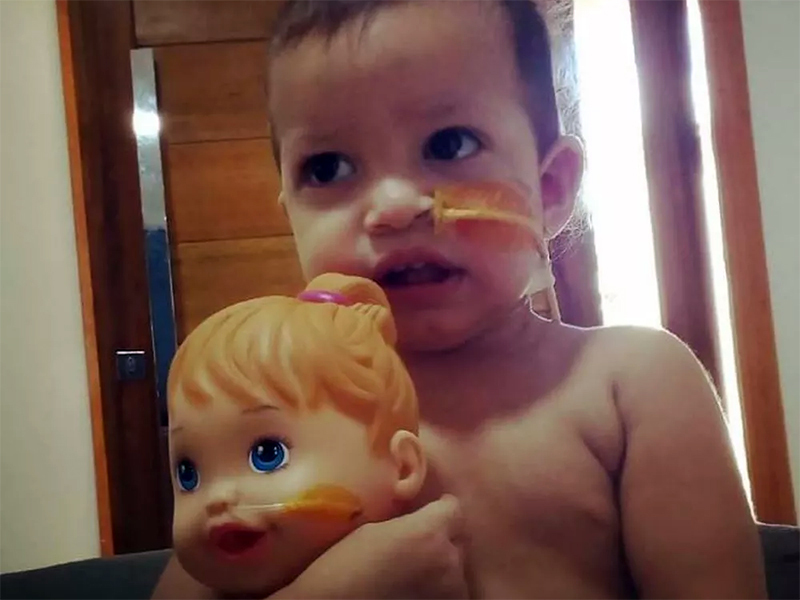 O bebê luta contra a disfagia, que é a dificuldade em engolir alimentos, e precisa se deslocar até Florianópolis para ir ao médico. “Quando ela viu a boneca, já apontou para a sonda e apontou para a dela”, contou a mãe. “Percebeu que era igual.” Desde então, o bebê não largou mais do brinquedo e, inclusive, dá comidinha em sua boca.