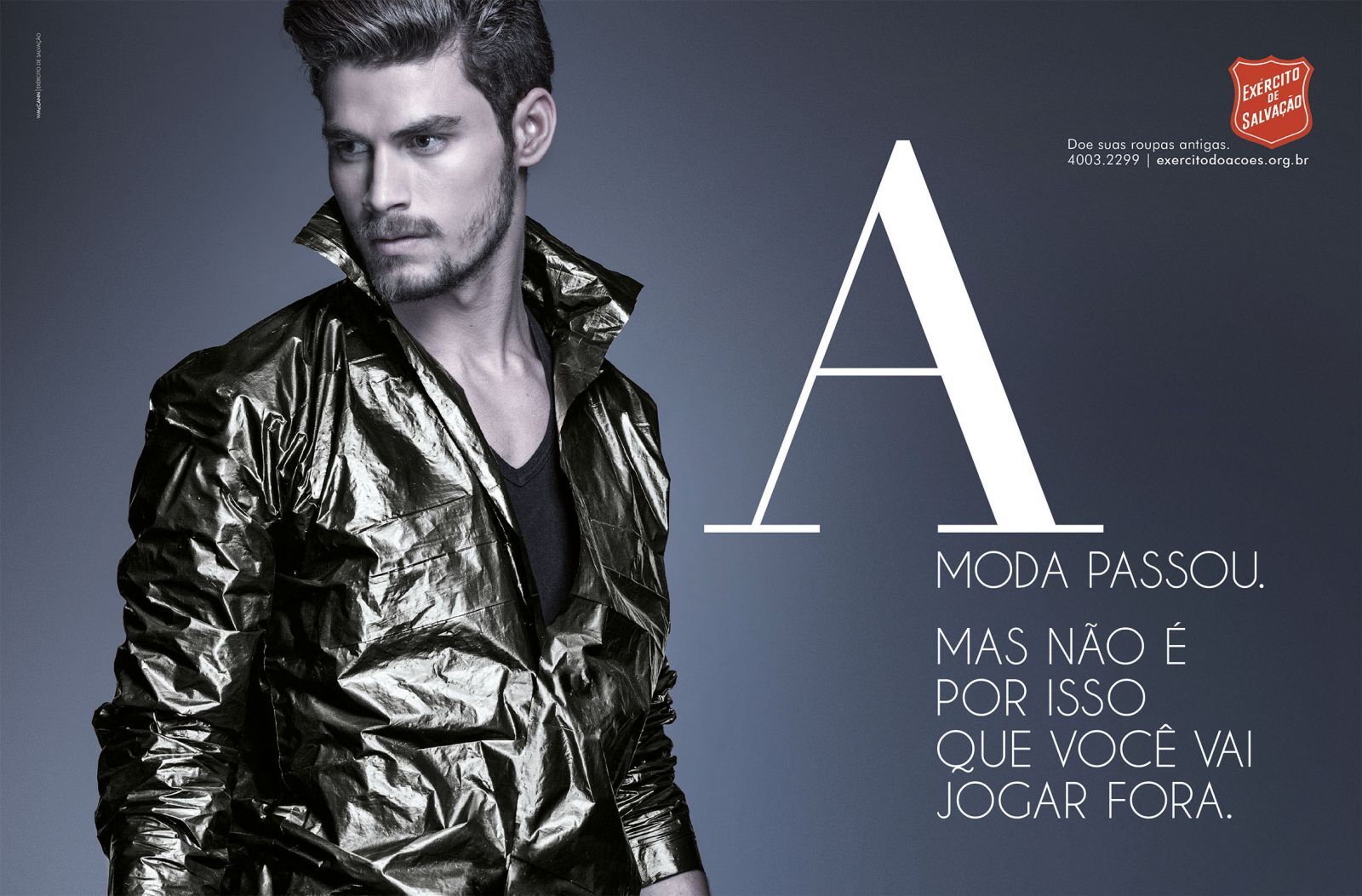 Os modelos Ana Cláudia Michels e Danilo Fonseca são os novos protagonistas de campanha do Exército de Salvação. Nas peças, os dois aparecem em fotos semelhantes às de editoriais de moda, trajando, respectivamente, um vestido e uma jaqueta confeccionados com saco de lixo.