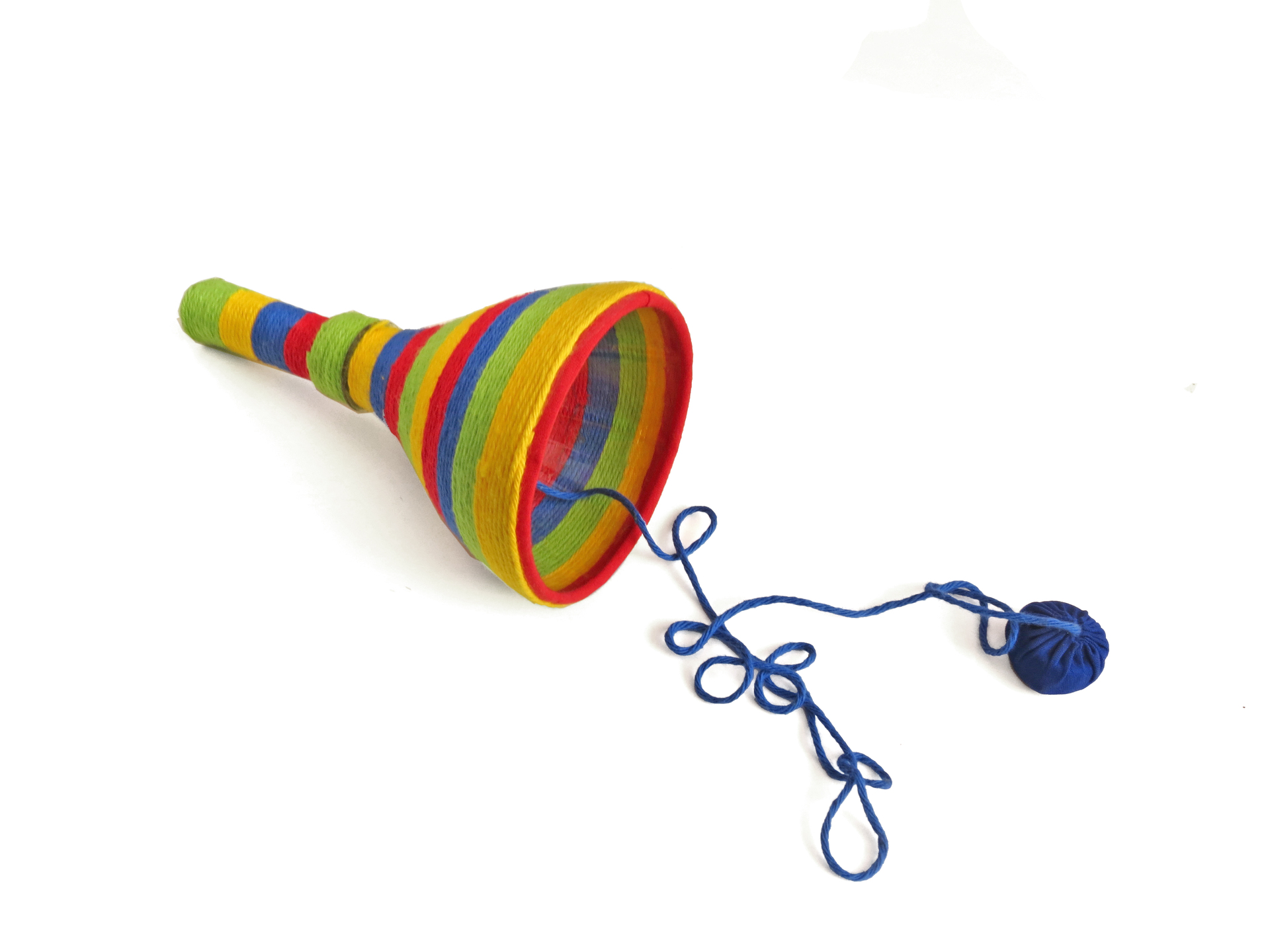 Para o bilboquê, as artesãs do grupo Fios Coloridos reaproveitam PETs. Elas limpam, cortam e montam a estrutura do brinquedo, em três formatos. Depois, usam a habilidade com fios para cobri-lo com cores vibrantes. R$ 35, nos modelos picolé, pirulito ou sorvetão.