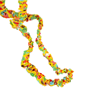 No vai-e-vem, as artesãs do grupo Fios Coloridos também usam as garrafas PET como matéria-prima. São necessários 30 metros de fios para a confeccionar cada brinquedo, além de corda de nylon e argolas. R$ 45.