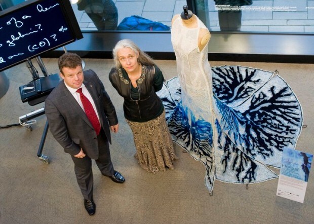 A designer Helen Sotorey e o químico Tony Ryan, ambos dos Estados Unidos, criaram o ‘Hersel’, um vestido que purifica o ar ao seu redor.
