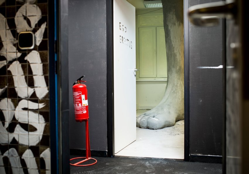 A obra é parte de “The Haus”, um ambicioso projeto realizado por cerca de 175 artistas para transformar o interior de um banco de cinco andares abandonado em Berlim em uma atração de arte selvagem antes de sua destruição.