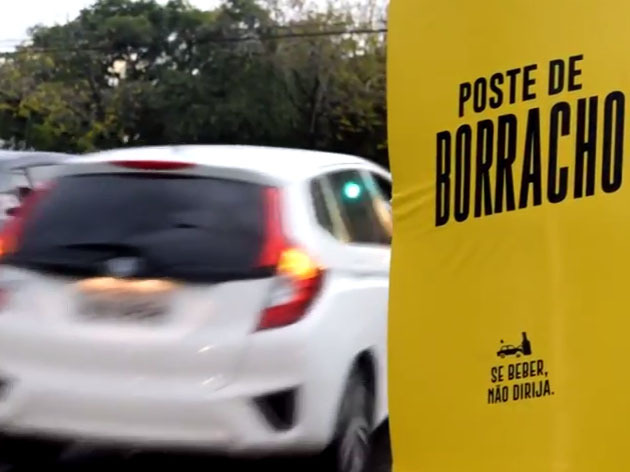 Com base na informação de que 75 % das mortes no trânsito são causadas pelo álcool, a Renault desenvolveu uma campanha denominada “Poste de Borracho”.
