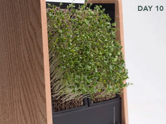 “Simplesmente adicione água e, em menos de dez dias, você pode desfrutar de nutritivos e deliciosos brotos”, diz seu criador, Kevin Liang. As plantas são regadas automaticamente por meio de um reservatório. Depois, é só preencher a estrutura com as sementes e esperar o crescimento.
