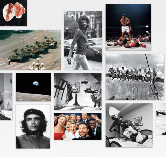 Entre as 100 fotos estão imagens ícones como a da Menina Afegã, feita pelo fotógrafo Steve McCurry, dos Beatles atravessando a Abbey Road, de Iain Macmillan, do homem que parou uma fileira de tanques na Praça da Paz Celestial, em Pequim, clicada por Jeff Widener, e do famoso beijo na Times Square no Dia da Vitória, capturada por Alfred Eisenstaedt.