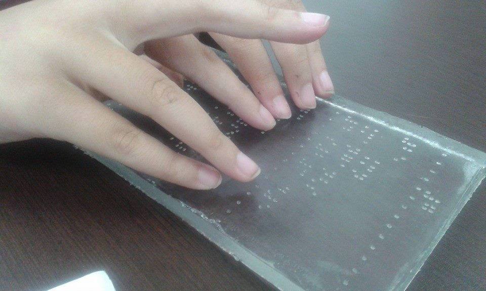 O trabalho para desenvolver cada peça seguiu um roteiro. Primeiro, as informações foram digitadas em papel Braille, utilizando a máquina Perkins. Depois, ele foi colado em placas de madeira para formar o molde em silicone. Para a peça final, as universitárias usaram a resina cristal, que possui rápida secagem, alta transparência, estabilidade na cor (mantendo-se cristalina por longo tempo) e dureza adequada, permitindo torneamento, lixamento e polimento.