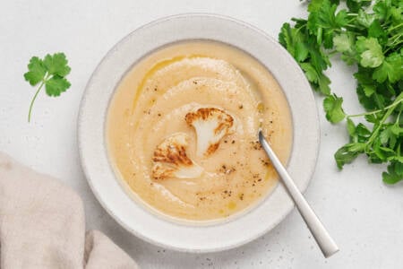 Essa sopa detox de couve-flor com gengibre e leite de coco vai aquecer o seu inverno com saúde