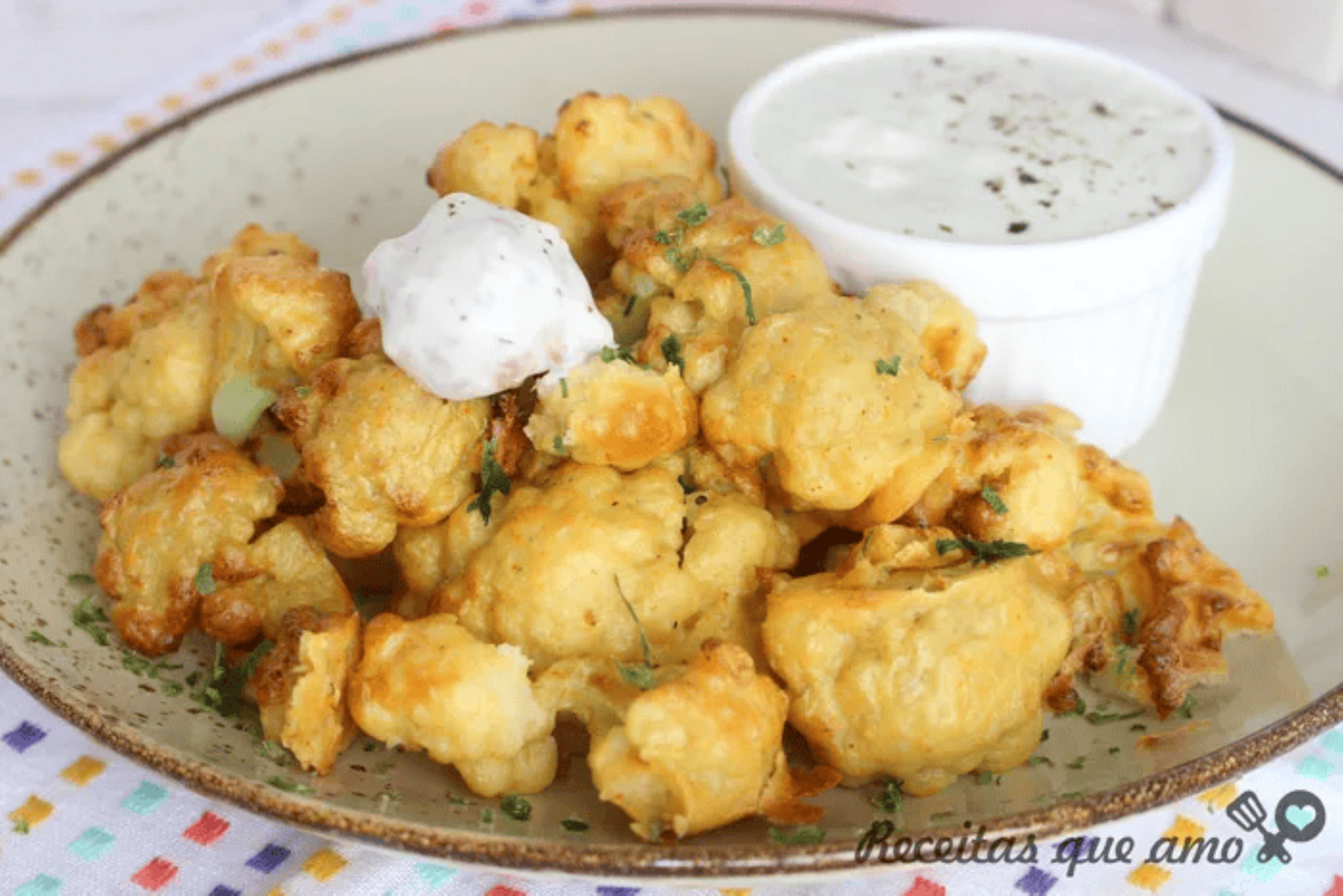 Além de simples, essa receita de couve flor empanada com molho de queijo é perfeita para acompanhar sua refeição ou petiscar