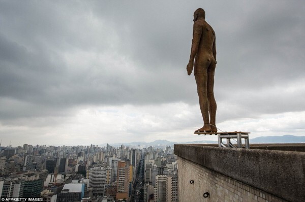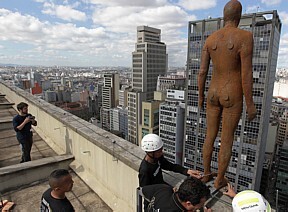 Há quase um mês expostas nas ruas de São Paulo, as obras do inusitado escultor inglês, Antony Gormley,está dando o que falar. Muita gente que passou pelo Vale do Anhangabaú nestes últimos dias, parou pelo menos uma vez para olhar os altos dos prédios, achando que as eculturas lá colocadas tratava-se de pessoas reais tentando se jogar.