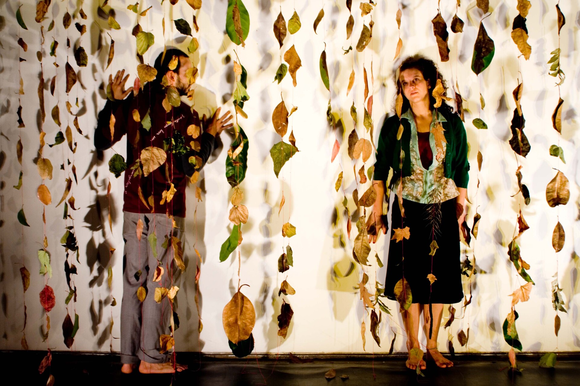 Diálogo, dança, vídeo, poesia, música, artes visuais e performance que enfocam uma casa onírica, habitada por um homem e uma mulher.