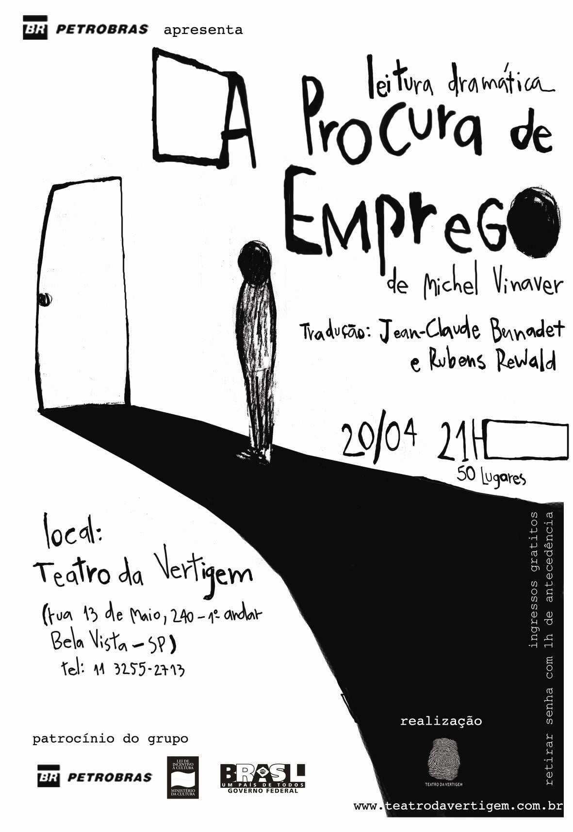 Dia 20 de abril, o Teatro da Vertigem realiza a leitura dramática do texto “A procura de emprego”, de Michel Vinaver. O evento é Catraca Livre.