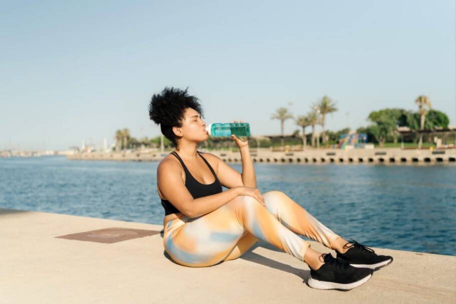 No verão, beber água durante o treino não é opcional. Breno Daniel recomenda ingerir líquidos antes, durante e após a atividade, mesmo sem sede. “A sede já é um sinal de desidratação. Para quem treina no calor, a reposição precisa ser constante, e em atividades longas, bebidas isotônicas também podem ser indicadas”, diz.