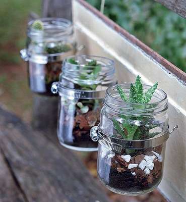 Aprenda a fazer mini hortas utilizando garrafas e potes de vidro