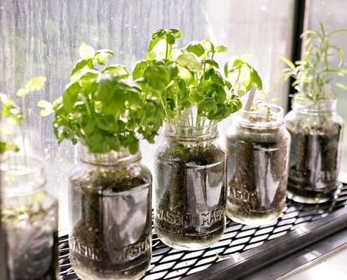 Ter uma mini horta a vista na cozinha é uma boa forma de obter alimentos frescos e compor as receitas do dia a dia. Para montar uma pequena horta de forma prática e utilizando a criatividade, objetos de vidro como potinhos ou garrafas podem ser grandes protagonistas.