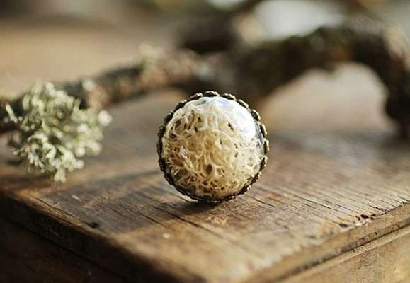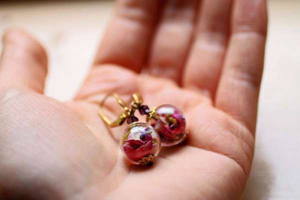 A artista Khrysty cria joias e bijuterias usando flores de verdade dentro de pequenos globos transparentes de vidro. A marca de acessórios leva o nome de RubyRobin e tem chamado atenção por sua personalidade e beleza minimalista.