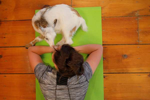 Aulas de yoga com filhotes de fazenda vira sucesso