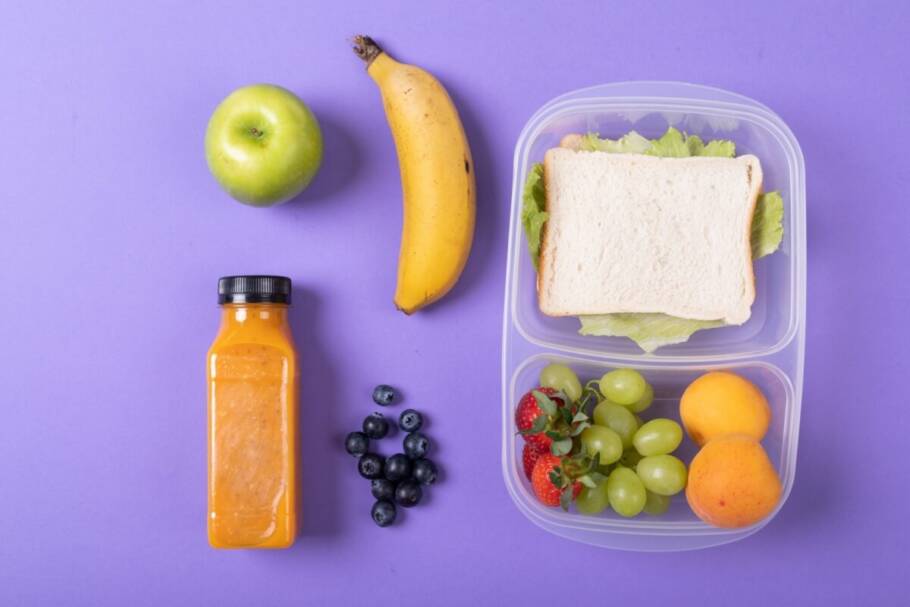 - Lanches práticos para levar na bolsa ou mochila, como frutas, sanduíche integral, castanhas e barrinhas de cereal sem açúcar.