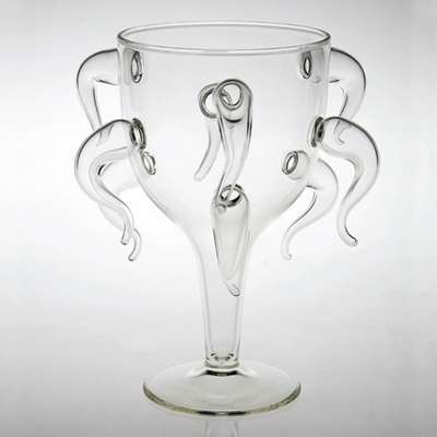 As taças misturam o ritual de beber um bom vinho ao “pecado” que ele revela. O conjunto de taças é vendido em uma caixa de madeira forrada com veludo, fazendo alusão a um sarcófago.