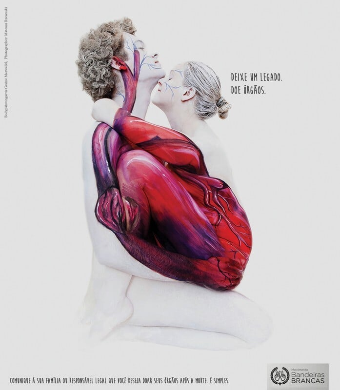 Dois corpos formam um coração em campanha de doação de órgãos