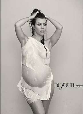 Grávida de seu terceiro filho, Kourtney Kardashian, posa nua para revista