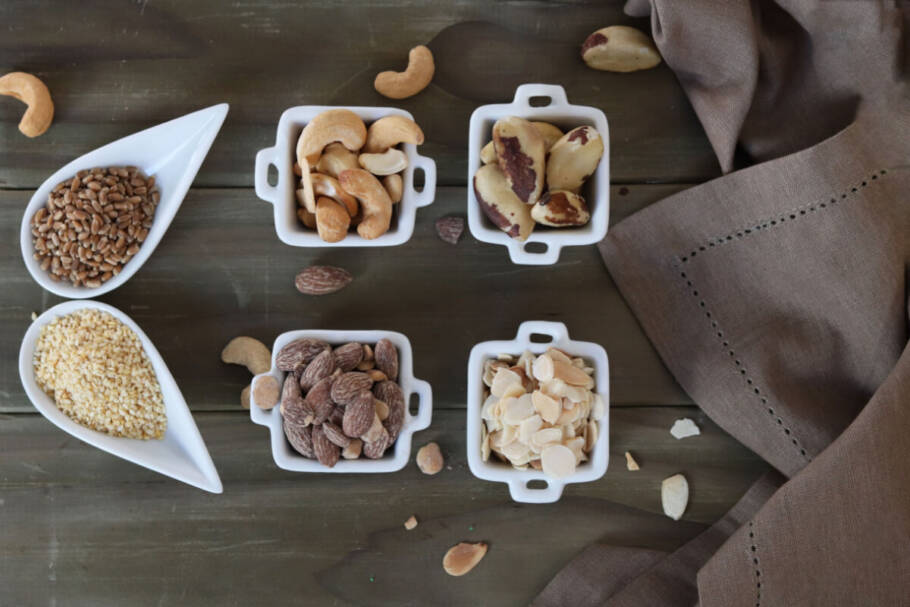 Castanhas, nozes, amêndoas, chia e linhaça são fontes de gorduras boas, que auxiliam na saúde dos vasos sanguíneos.
