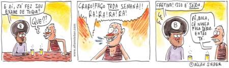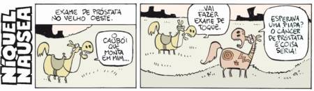A iniciativa, que faz parte do movimento Novembro Azul, é lançada justamente no Dia Mundial de Combate ao Câncer de Próstata, hoje, em 17 de novembro. As tirinhas reunidas são assinadas por renomados cartunistas, como Angeli, Fernando Gonsales, André Dahmer, Allan Sieber e Caco Galhardo. Confira abaixo: