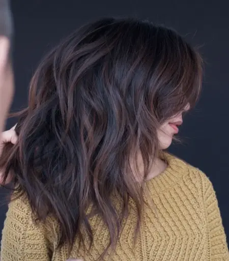 Cortes em camadas, como o shag moderno, oferecem volume e expressividade. As camadas criam uma aparência jovem, suavizando o visual. Um exemplo disso é o cabelo médio com franja, que adiciona charme e se adapta a diversos tipos de rosto.