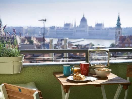 Apartamento em Budapeste, na Hungria, com vista espetacular para o Parlamento. Com uma arquitetura espetacular, é um dos edifícios legislativos mais antigos da Europa. Com 70 metros quadrados, o imóvel possui dois quartos, banheira, cozinha totalmente equipada com máquina de lavar louça e duas varandas.