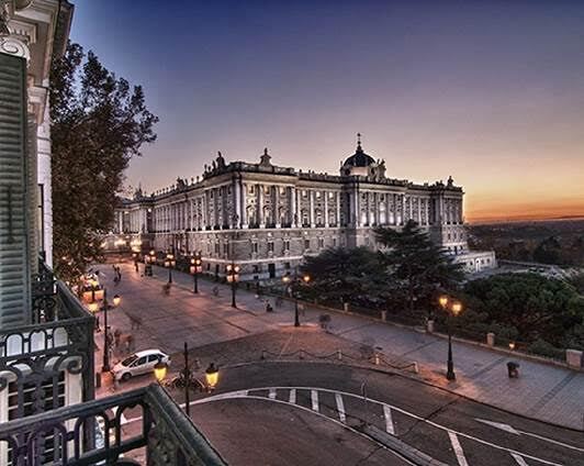 Apartamento em Madrid, na Espanha, com vista de tirar o fôlego para o Palácio Real. O monumento, construído no século 18, continua sendo a residência oficial do Rei de Espanha, sendo utilizado pelo chefe de estado para ocasiões de gala.