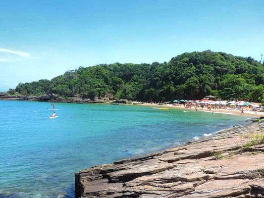 Praia de águas tranquilas e límpidas, pequena e aconchegante.