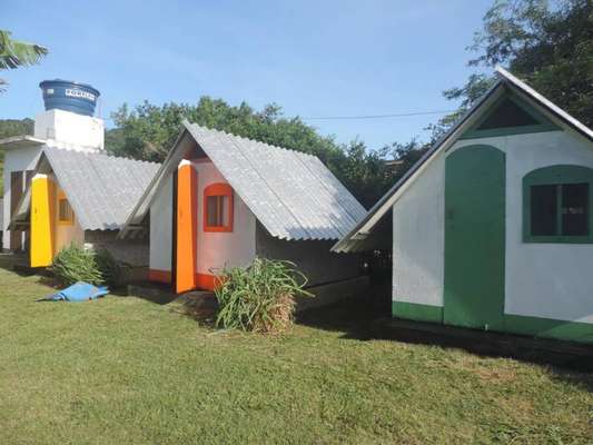 Ficamos no Camping das Acerolas que fica a cerca de 5 km do centro. Logo que chegamos fomos recepcionados pelo David que é o proprietário e nos apresentou o local. Antes que montássemos nossa barraca, ele insistiu para que ficássemos em uma das “Barraca-chalé”, e lá fomos nós experimentar essa nova maneira de acampar.